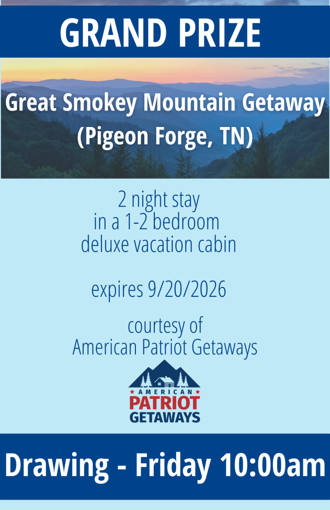Enter below or by Giving to Fall Pledge Drive to for your chance to win a 2-night stay in Pigeon Forge, TN curtesy of American Patriot Getaways.