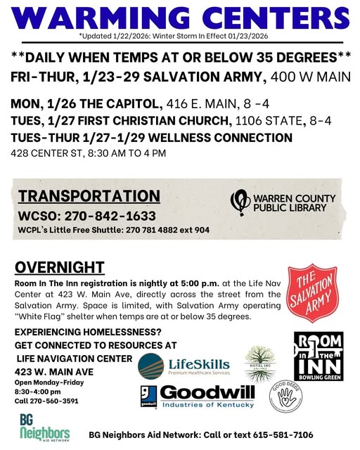 By working together, staying informed, and using available local resources, we can ensure everyone in the Bowling Green, Glasgow, Owensboro, and surrounding communities stays safe and warm during winter weather emergencies. ❄️
